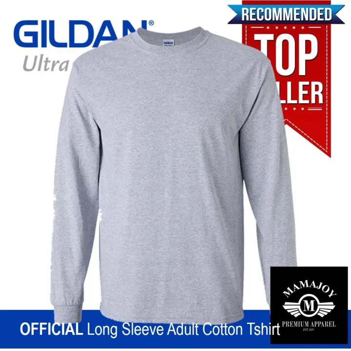 Official Gildan Ultra Cotton Adult T Shirt Solid Plain Round Neck Long Sleeve T Shirt For Men Women Unisex Casual Style Tops Clothing Fashion Tshirt Baju Kemeja Tee Kosong Lengan Panjang Lelaki Perempuan
